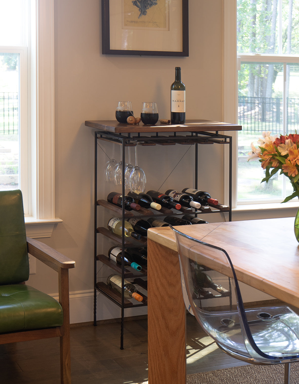 The open structure allows bottles and glassware to remain visible and easily accessible during daily use.